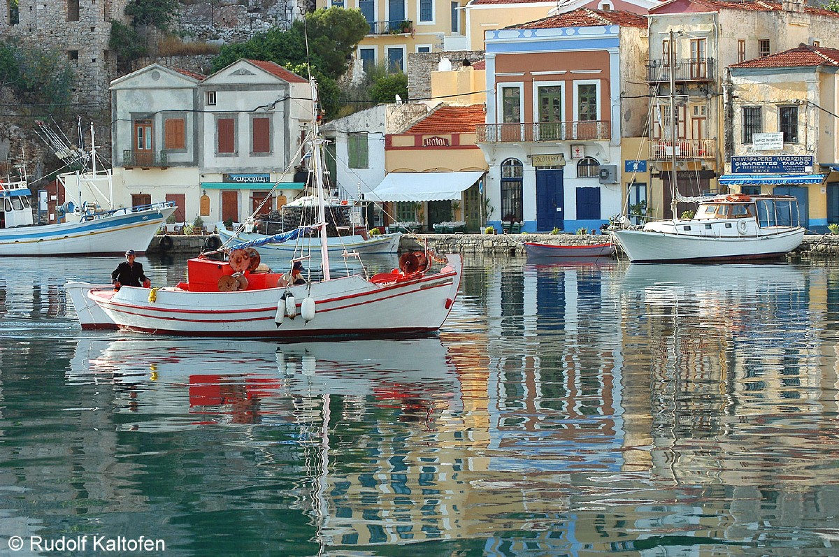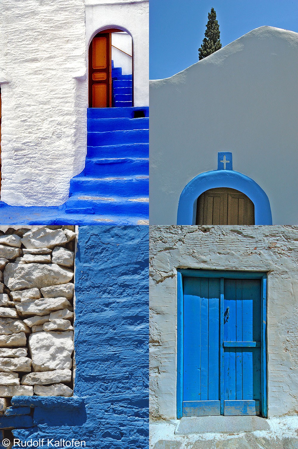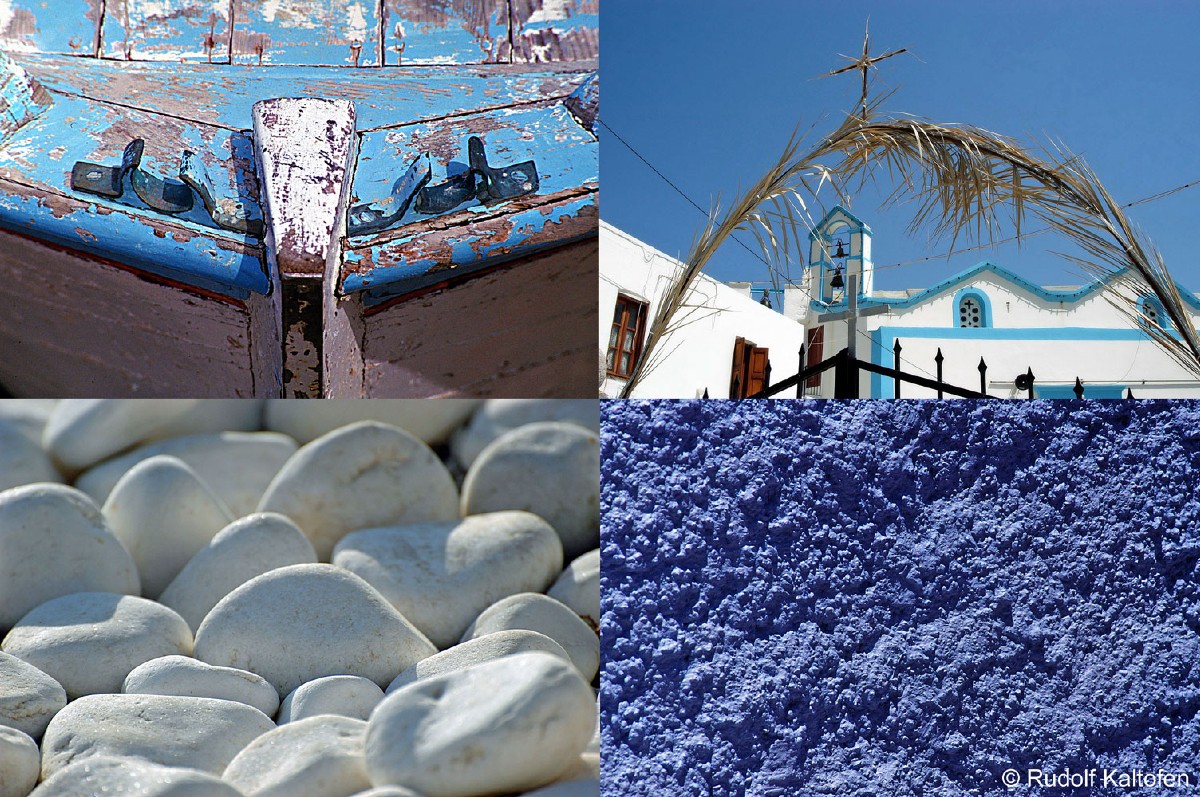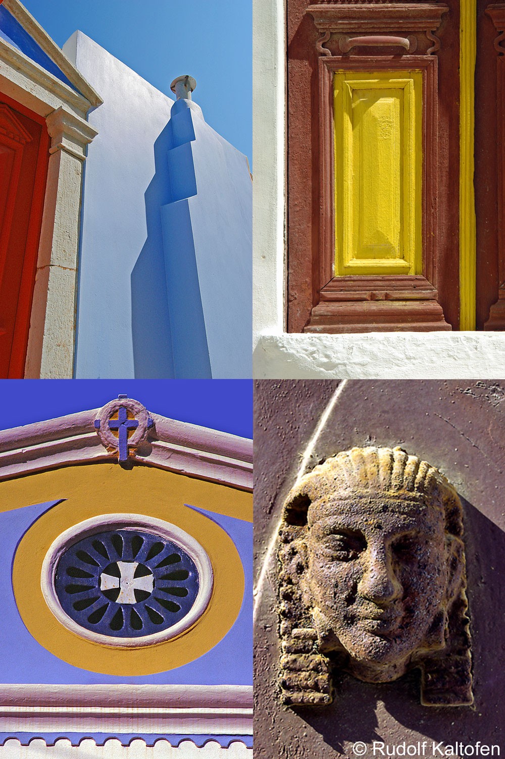 Wenn auch der unter Denkmalschutz stehende Hauptort Sými hauptsächlich von seinen pastellfarbenen Bauwerken lebt, und mit neoklassizistischen Stilelementen überschwenglich bevölkert zu sein scheint, finden sich dennoch zahlreiche Traumbilder vom gefühlten weißblauen Zweiklang der griechischen Inselseligkeit - man muss diese nur aufspüren und in sich vergegenwärtigen. Auch auf Sými finden sich die Nationalfarben der Hellenen nicht nur auf den Flaggen und Fähnchen am Hafen.